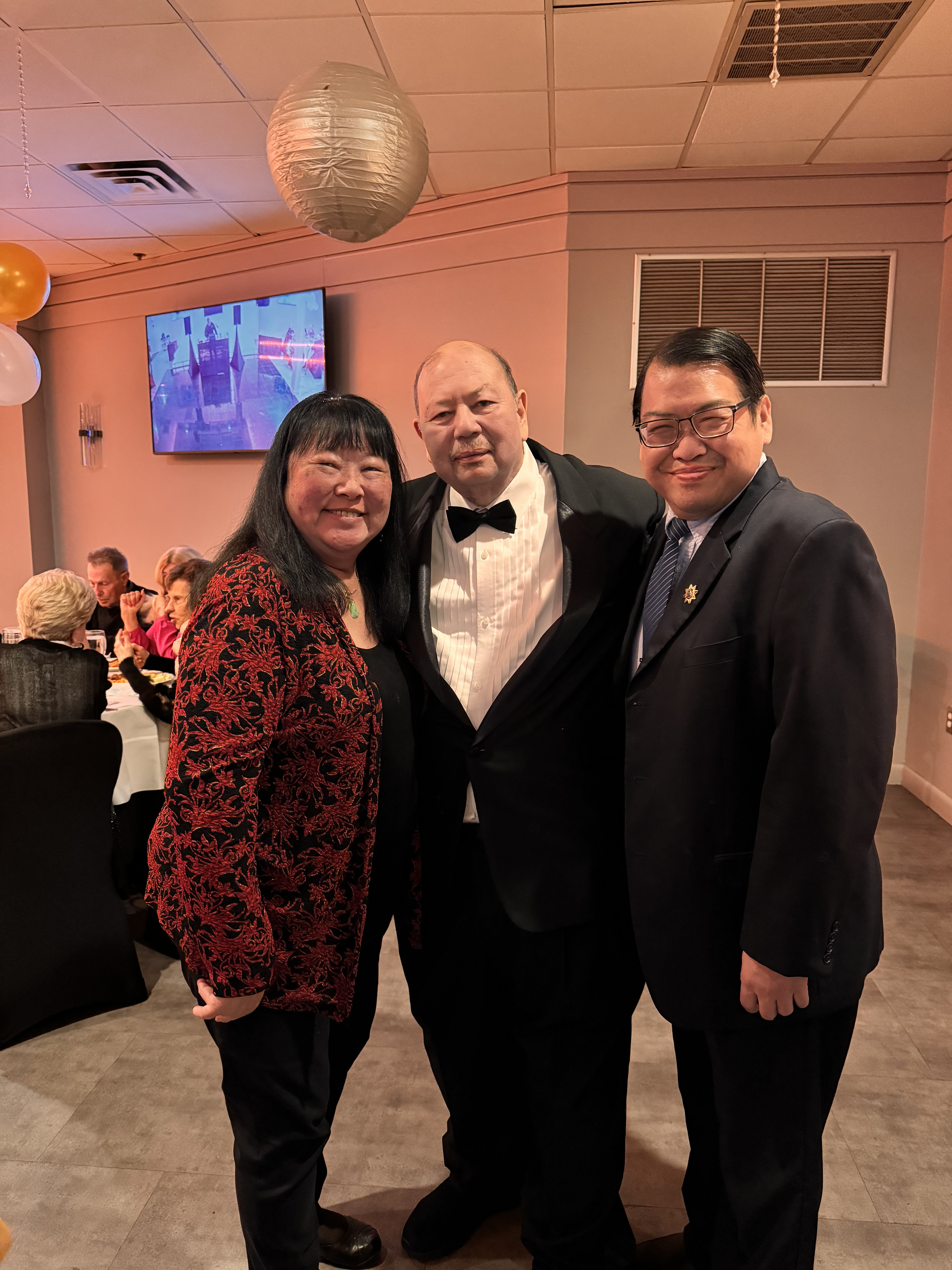 Kathy Lee, Manager Amboy Bank, Robert May, Jaime Yeh - March 2025 Wendy and Robert's 50th wedding anniversary celebration